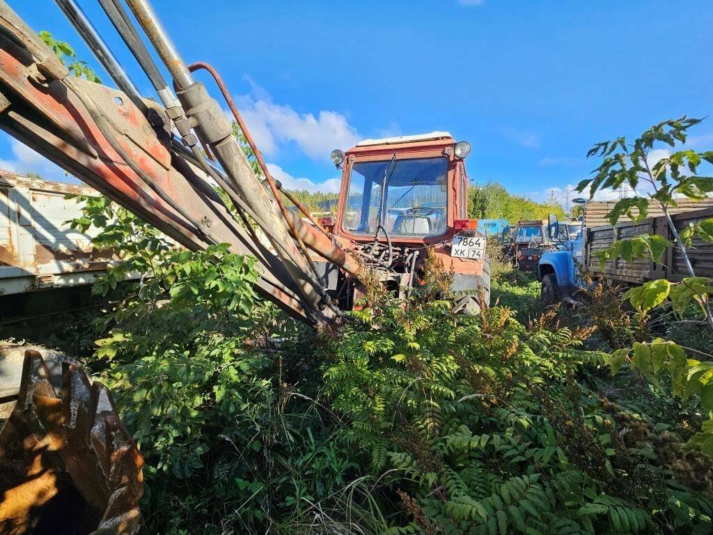 экскаватор одноковшовый МТЗ-80/ ЭО2621В. Лакокрасочное покрытие повреждено, износ автопокрышек 70%, подтекания масла гидравлики, АКБ отсутствует.