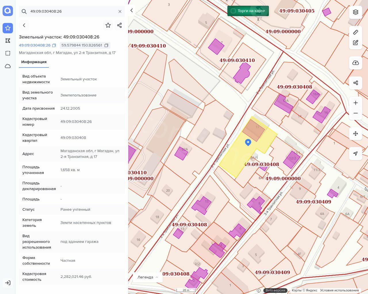 Местонахождение: г. Магадан, ул. 2-я Транзитная 17, на земельном участке 1658 м.кв. с кадастровым номером: 49:09:030408:26