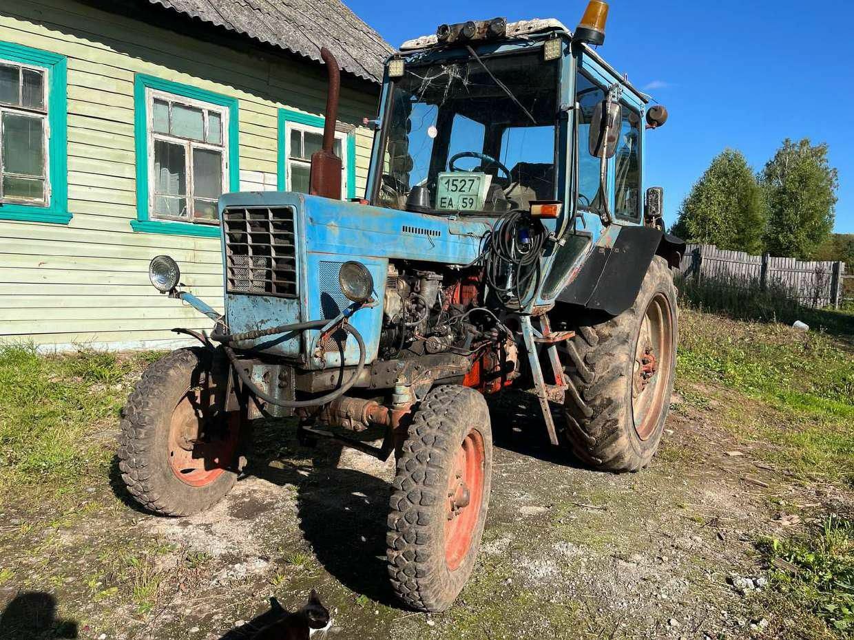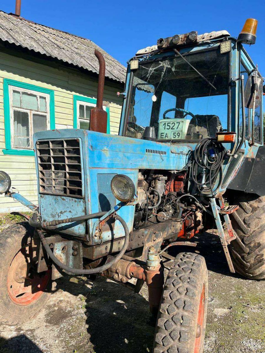 Трактор колесный, марка: МТЗ-82Л, модель: МТЗ-82Л, год изготовления: 1988, г/н: 1527 ЕА 59, цвет: синий. Тех. описание: Треснуто лобовое стекло, ржавчина/сколы/потертости по кузову, при осмотре трактор не заводили, нужна проф. диагностика, возможны скрытые повреждения.
